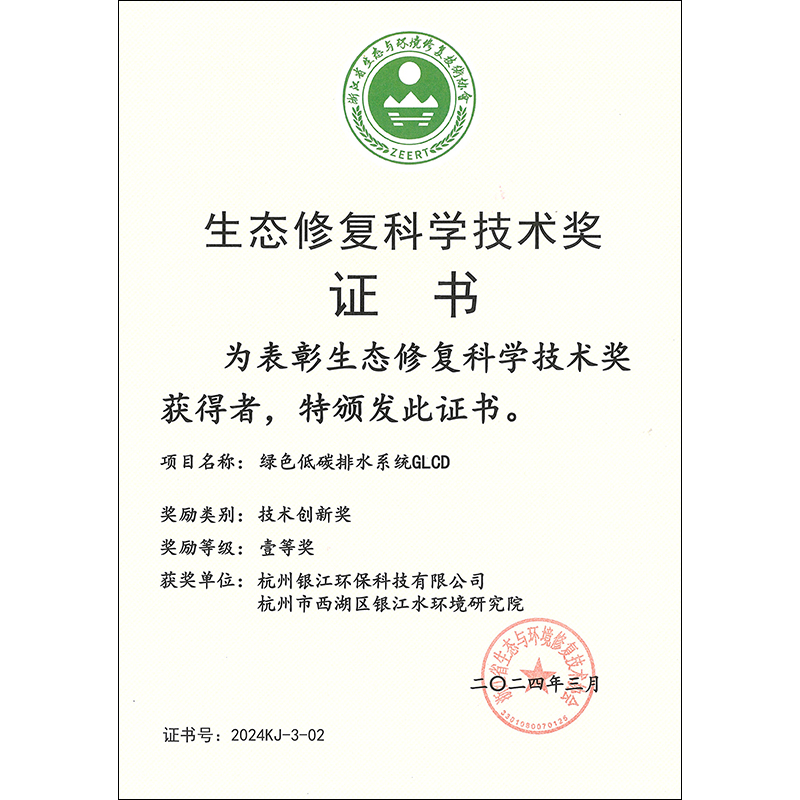 銀江環保綠色低碳排水系統獲生態修復科學技術一等獎