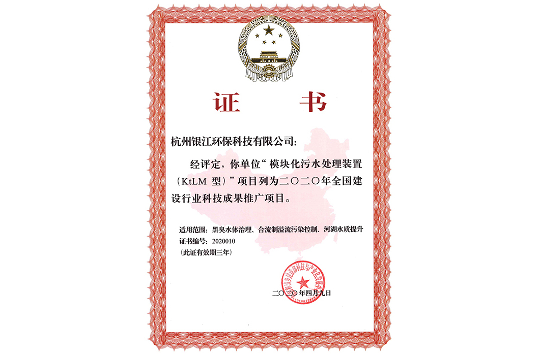 銀江環保模塊化污水處理裝置(KtLM型)入選2020年第一批全國建設行業科技成果推廣項目