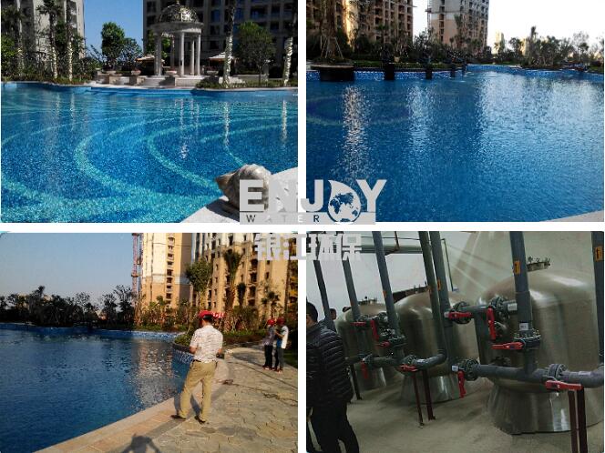 我公司承接該項目的室外景觀泳池水處理工程,泳池總水量約為460m3,循環(huán)時間約為6小時。主要采用循環(huán)泵站、水凈化站、消毒系統(tǒng)、水質(zhì)監(jiān)測系統(tǒng)。