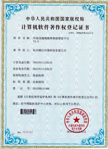 “基于阿里云技術的環保設施物聯網管理平臺”有關軟件著作權