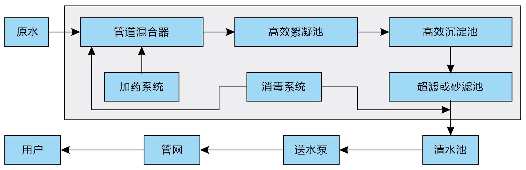 適用于村鎮飲用水項目、河湖水庫等一般水源的處理制備飲用水,廣泛適用于低濁度水處理,也可處理高濁度水。