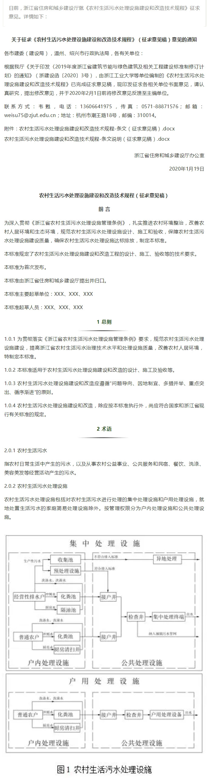 浙江省《農村生活污水處理設施建設和改造技術規程》(征求意見稿)發布日期:2020-03-08