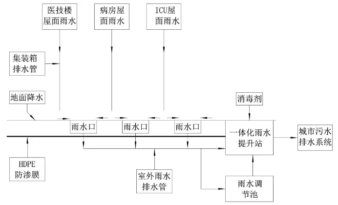 室外雨水應采用管道系統排水,不采用地面徑流或明溝方式排放。采用地面徑流或明溝排放,一旦被新型冠狀病毒污染,易再次通過室外雨水排水擴散病毒,接觸到易感人群,增加導致新型冠狀病毒感染的肺炎暴發或流行的風險,因此火神山醫院設了單獨的雨水排水管道系統。