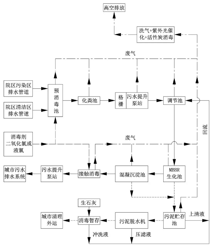 圖7 火神山醫院污水處理工藝流程
