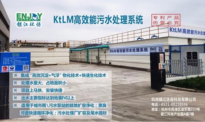銀江環保KTLM高效能污水凈化系統集成預處理技術、高效物化技術和高效能生化技術于一體,處理水量大。能對生活污水、雨污混合水體進行高效處理,出水水質主要指標達《地表水環境質量標準》(GB3838-2002)的五類以上。