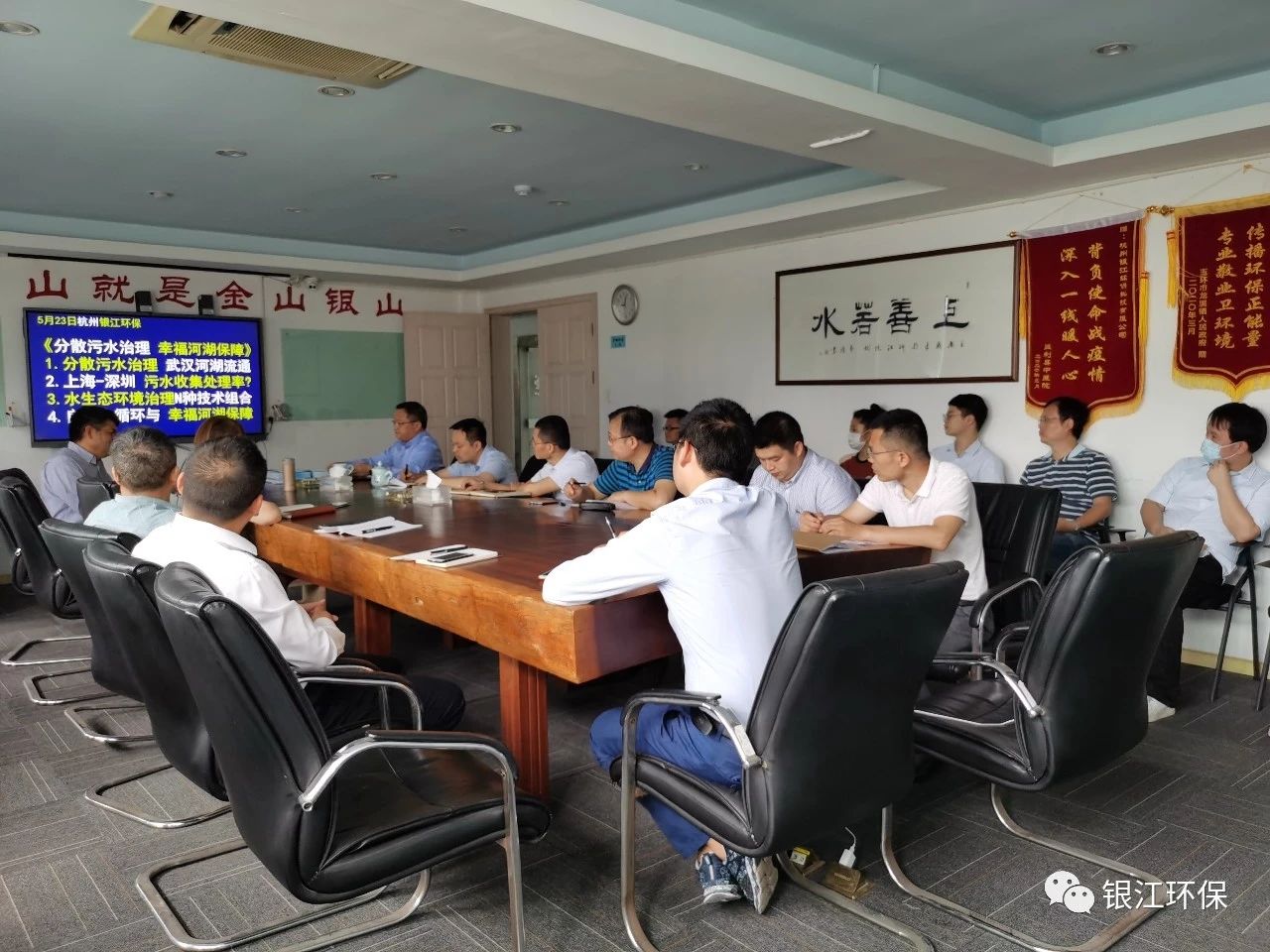 2020年5月23日上午9點(diǎn),銀江環(huán)保組織技術(shù)管理中心及銷售管理中心全員進(jìn)行了《分散污水治理 幸福河湖保障》主題培訓(xùn),榮幸請(qǐng)到上海市水務(wù)規(guī)劃設(shè)計(jì)研究院副總工程師趙敏華給團(tuán)隊(duì)進(jìn)行培訓(xùn),同時(shí)邀請(qǐng)中國電建集團(tuán)華東院生態(tài)環(huán)境院副院長魏俊參加會(huì)議,會(huì)議主題分為以下5個(gè)方面: