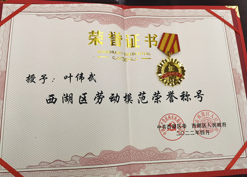 董事長(zhǎng)葉偉武榮獲西湖區(qū)勞動(dòng)模范稱號(hào)發(fā)布日期:2022-05-10