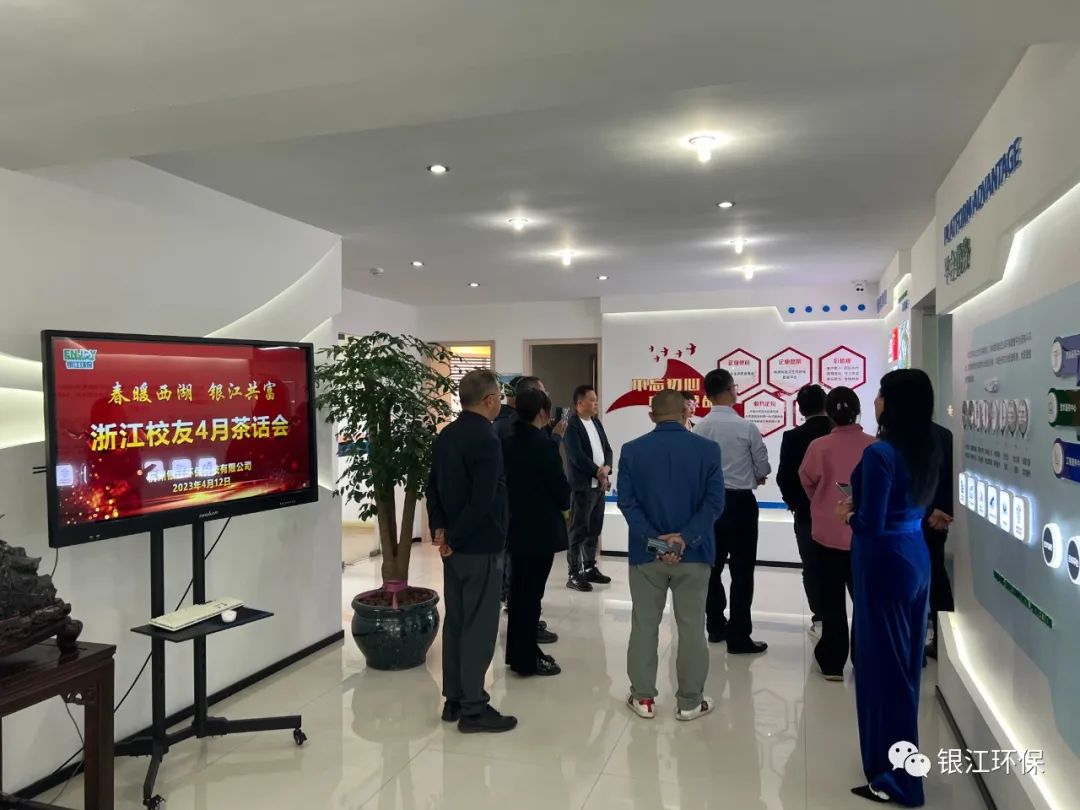 4月12日下午,浙大校友蒞臨銀江環保交流聯誼,董事長葉偉武、常務副總沈小明等公司管理人員熱情接待并全程陪同。
