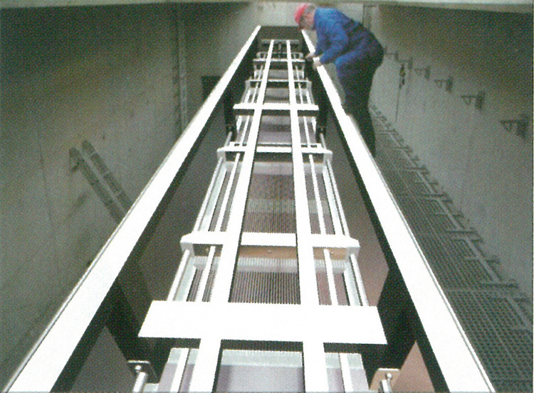 平板細(xì)格柵采用模塊化設(shè)計(jì),可通過較小的安裝口(6。0mm)安裝。模塊的最小寬度是40cm,但可以以10cm的長度逐步加寬;模塊最小長度為1 5m,可以以75cm的長度逐步加長;格柵高度(包括水力驅(qū)動(dòng)器)組裝后尺寸小于30cm。細(xì)桿間距標(biāo)準(zhǔn)值為4mm,這時(shí)清洗效果最好,也可提供細(xì)桿間距為6、8、10或12mm的產(chǎn)品。
