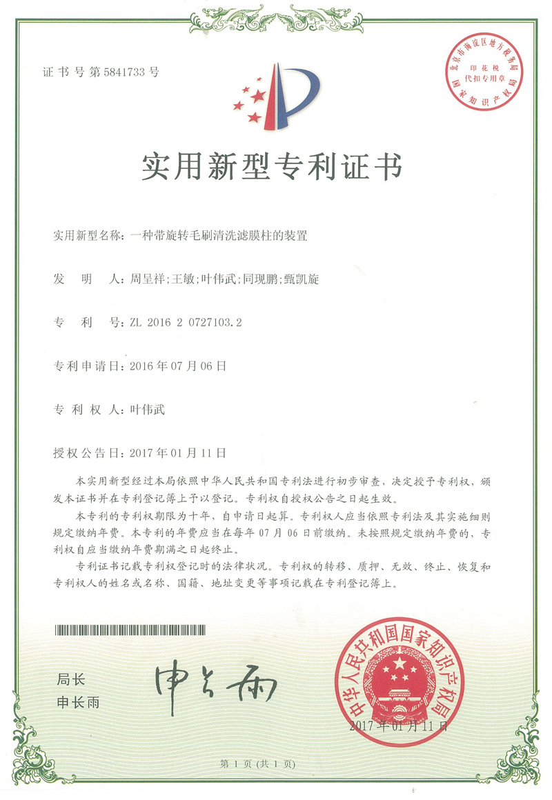 一種帶旋轉(zhuǎn)毛刷清洗濾膜柱的裝置